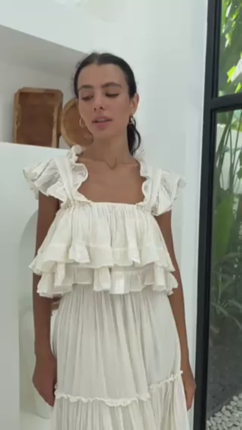 Beige Ruffled Dress: Romantic Elegance with Flowy Movement
