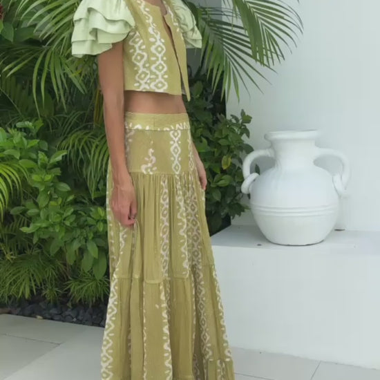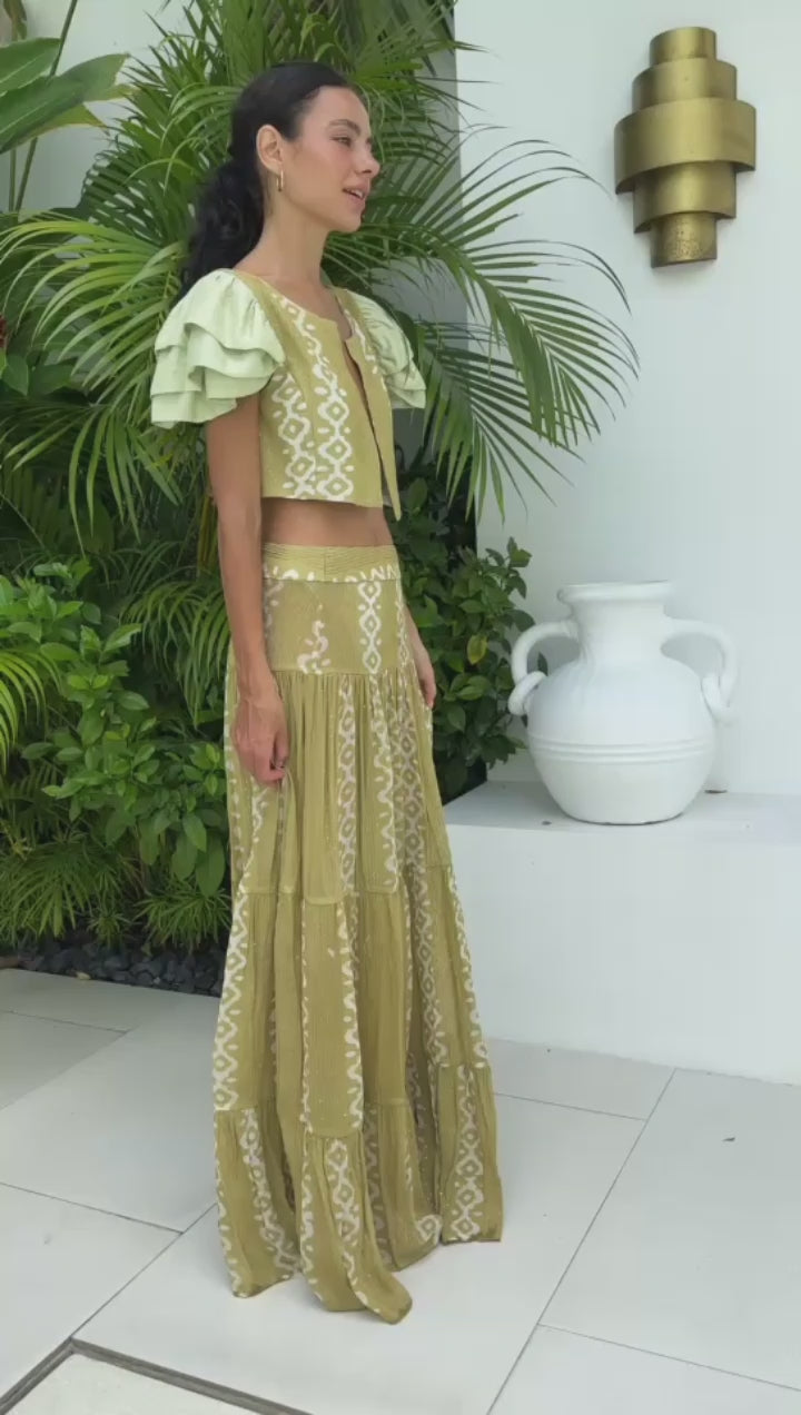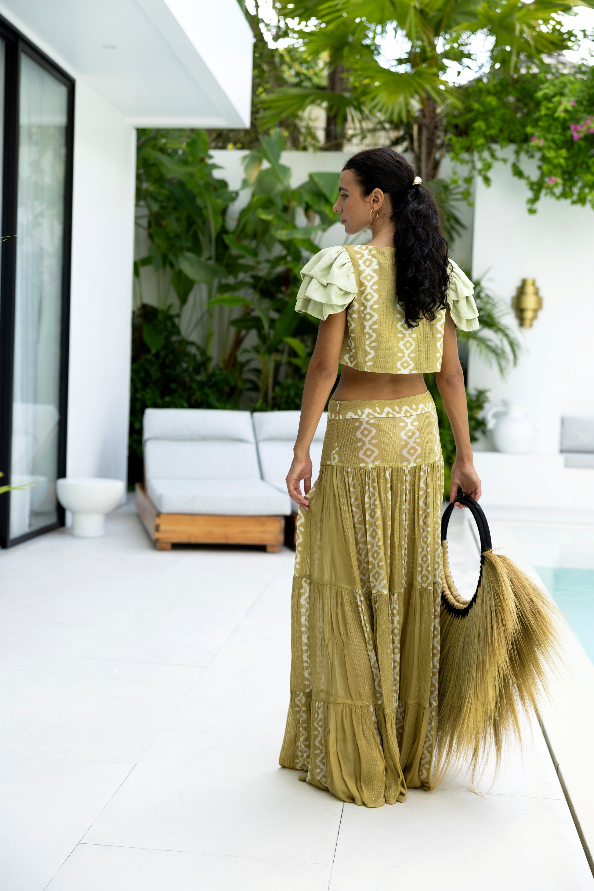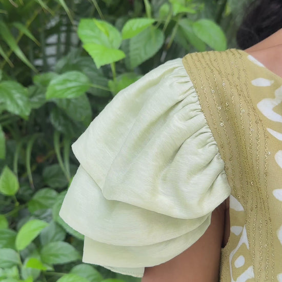 This chiffon top with sequins is a piece that combines elegance and delicacy with a touch of subtle sparkle. Crafted from light, translucent chiffon gauze, its ethereal texture creates a fluid and feminine effect, while the sequins, strategically placed (whether in subtle geometric patterns or a soft gradient), add sophisticated shimmer without overwhelming the design.